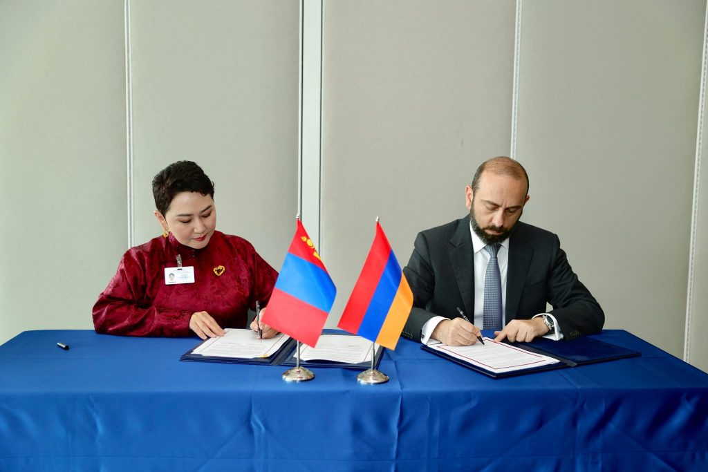 Гадаад харилцааны сайд Б.Батцэцэг НҮБ-ын Ерөнхий Ассамблейн 80 дугаар чуулганы Ерөнхий санал шүүмжлэлд оролцох үеэр 2025 оны 9 дүгээр сарын 24-ний өдөр Бүгд Найрамдах Армени Улсын Гадаад хэргийн сайд Арарат Мирзоянтай уулзлаа.
