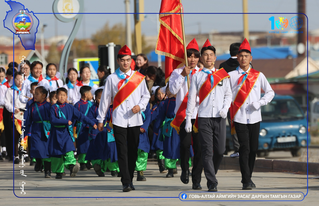 Өнөөдөр /2025.09.26/ аймгийн төв талбайд болсон түүхэн ойн баярын нээлтийн ёслолд аймгийн хүүхэд багачууд, багш сурган хүмүүжүүлэгчид, эцэг эх, асран хамгаалагчид, хүүхдийн төлөөх байгууллагын үе үеийн ажилтан, албан хаагчид болон иргэд өргөнөөр оролцлоо.