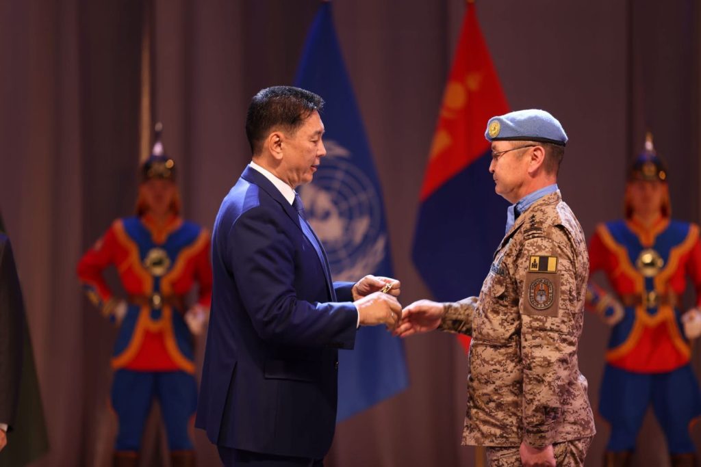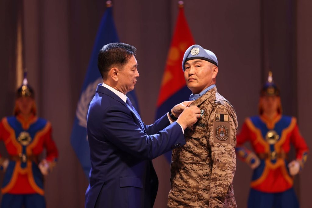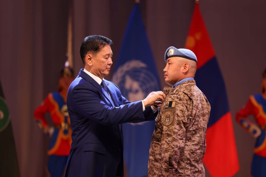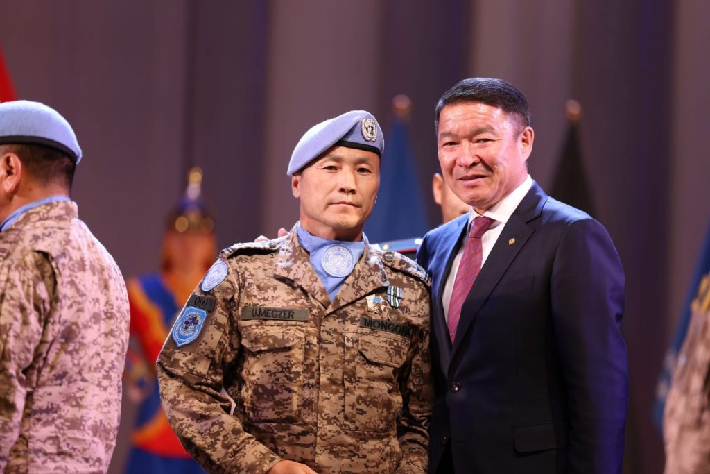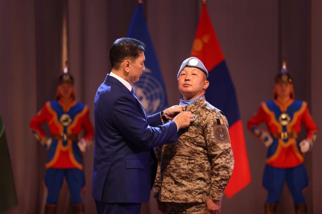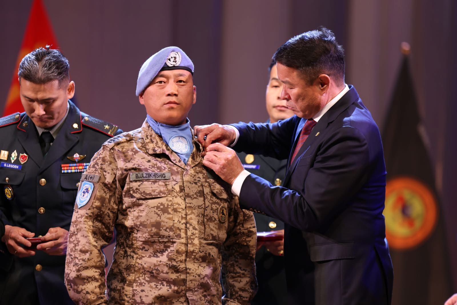 Бүгд Найрамдах Өмнөд Судан Улсад явагдаж буй НҮБ-ын мандаттай “UNMISS” энхийг сахиулах ажиллагаанд Монгол Улсын Зэвсэгт хүчний XIV ээлжийн мотобуудлагын батальоны бие бүрэлдэхүүний байгуулсан гавьяаг нь үнэлж, үүргээ нэр төртэйгөөр гүйцэтгэж ирсэнд талархал илэрхийлэн, Монгол Улсын Ерөнхийлөгчийн зарлигаар төрийн дээд одон медаль гардууллаа.