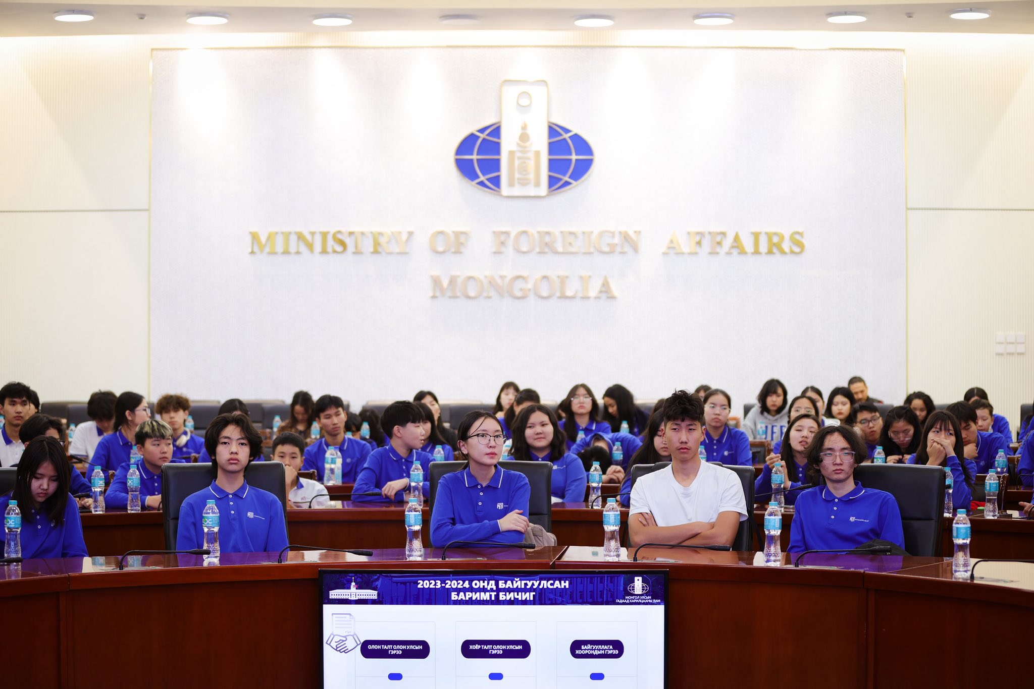 Энэ удаагийн арга хэмжээнд Санхүү, эдийн засгийн дээд сургуулийн лицей, Нийслэлийн Ерөнхий боловсролын Эрхэм баян сургуулийн 12 дугаар ангийн сурагчид оролцож, Монгол Улсын гадаад харилцааны өнөөгийн нөхцөл байдал, Гадаад харилцааны яамны үйл ажиллагааны талаар мэдээлэл авч, өөрсдийн сонирхсон асуудлаар идэвхтэй хэлэлцүүлэг өрнүүлэв.
