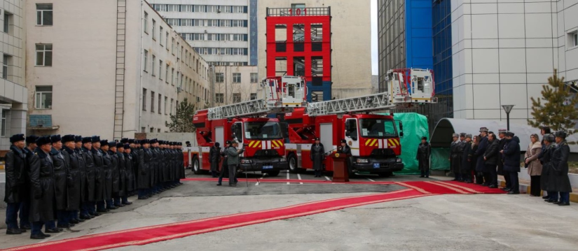 Чингэлтэй дүүргийн Онцгой байдлын хэлтсийн Гал түймэр унтраах аврах 10 дугаар анги, Баянзүрх дүүргийн Онцгой байдлын хэлтсийн Гал түймэр унтраах, аврах 63 дугаар ангид гал түймэр унтраах 42 метр урттай автомеханик шатны автомашин хүлээлгэн өгчээ.