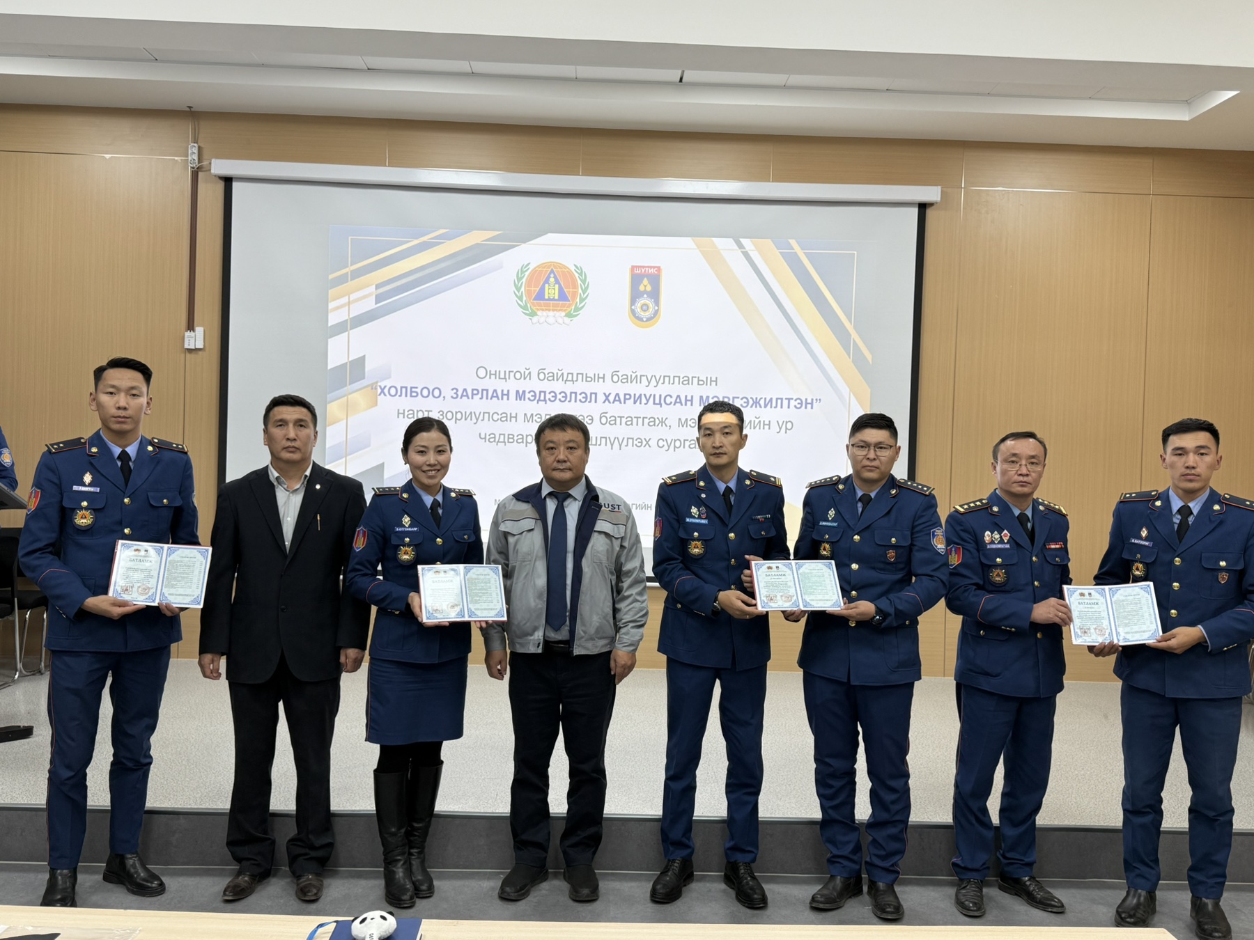 Энэ үеэр ОБЕГ-ын Холбоо, мэдээллийн технологийн газрын дарга, хошууч П.Отгонпүрэв “Онцгой байдлын байгууллагаас сүүлийн үеийн шинэ техник, технологи, инновацыг үйл ажиллагаандаа нэвтрүүлэхэд онцгой анхаарч, ажиллаж байна. Үүний нэг тод жишээ бол “Монгол Улсад эрт зарлан мэдээллийн нэгдсэн системийг бэхжүүлэх” төсөл юм. Тус төсөл хэрэгжсэнээр үндэсний хэмжээнд гамшгийн аюулыг зарлан мэдээлэх нэгдсэн систем бий болж, гамшгаас урьдчилан сэргийлэх, эрт сэрэмжлүүлэх үйл ажиллагаанд Онцгой байдлын байгууллага болон иргэд, олон нийтийн оролцоо, чадавхыг нэмэгдүүлнэ. Мэдээлэл, харилцаа холбооны технологи нь Онцгой байдлын байгууллагын хөгжлийн ирээдүйг тодорхойлогч чухал тулгуур тул энэхүү сургалтаар олж авсан мэдлэг, ур чадвараа ажлын байрандаа үр дүнтэй ашиглаж, байгууллагынхаа хөгжил, дэвшилд үнэтэй хувь нэмэр оруулна гэдэгт итгэлтэй байна” гэв.