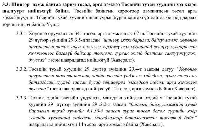 Давхардсан 230 арга хэмжээг төсвийн төслөөс хасах болон төсөвт өртөг, 2026 онд санхүүжих дүнг нь бууруулах замаар зохицуулалт хийгдсэн байна.