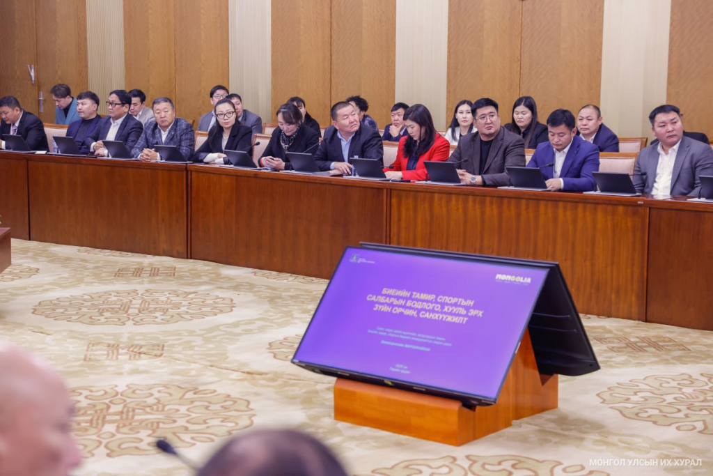 Улсын Их Хурлын Хүний хөгжил, нийгмийн бодлогын байнгын хороо, Соёл, спорт, залуучуудын дэд хороо, Соёл, спорт, аялал жуулчлал, залуучуудын яам хамтран “Спортоор тогтмол хичээллэе” уриан дор биеийн тамир, спортын салбарын төлөөлөлтэй хийх уулзалт, хэлэлцүүлгийг /2025.12.16/ зохион байгууллаа.