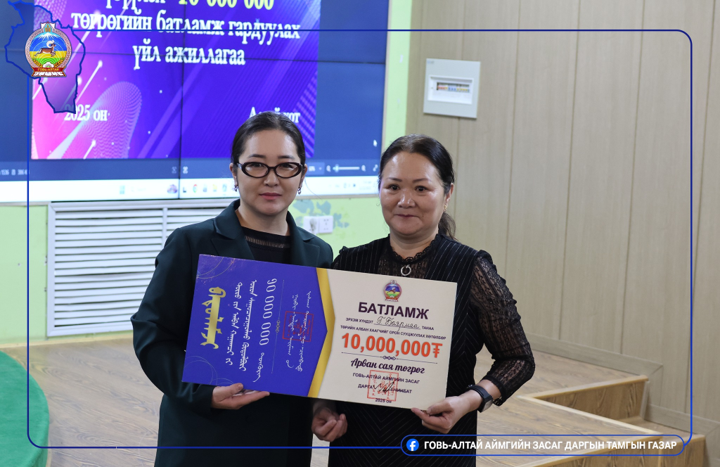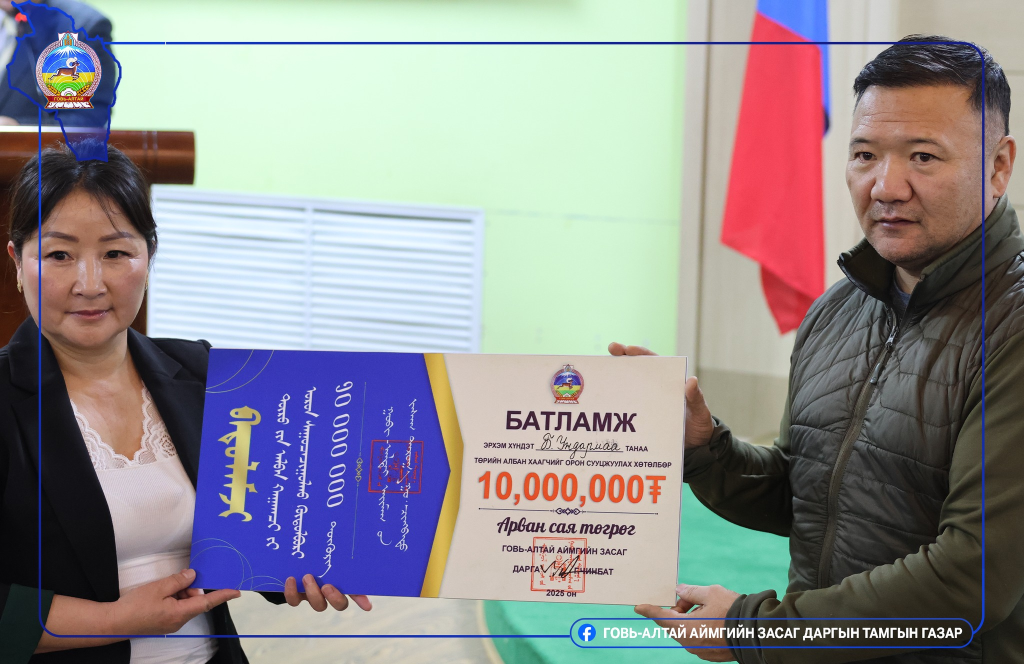 “Говь-Алтай 80+ эрүүл мэндийн хөтөлбөр”, “Төрийн албан хаагчийг орон сууцжуулах хөтөлбөр” 2025 оны хүрээнд Эрүүл мэндийн салбарын 50 албан хаагчдад орон сууцны дэмжлэг тус бүр 10 сая төгрөг, нийт 500 сая төгрөгийн санхүүгийн дэмжлэгийг Монгол Улсын Их Хурлын Гишүүн О.Амгаланбаатар, Говь-Алтай аймгийн ИТХ-ын Дарга Л.Насанбуян Говь-Алтай аймгийн Засаг дарга Г.Чинбат нар гардууллаа.
