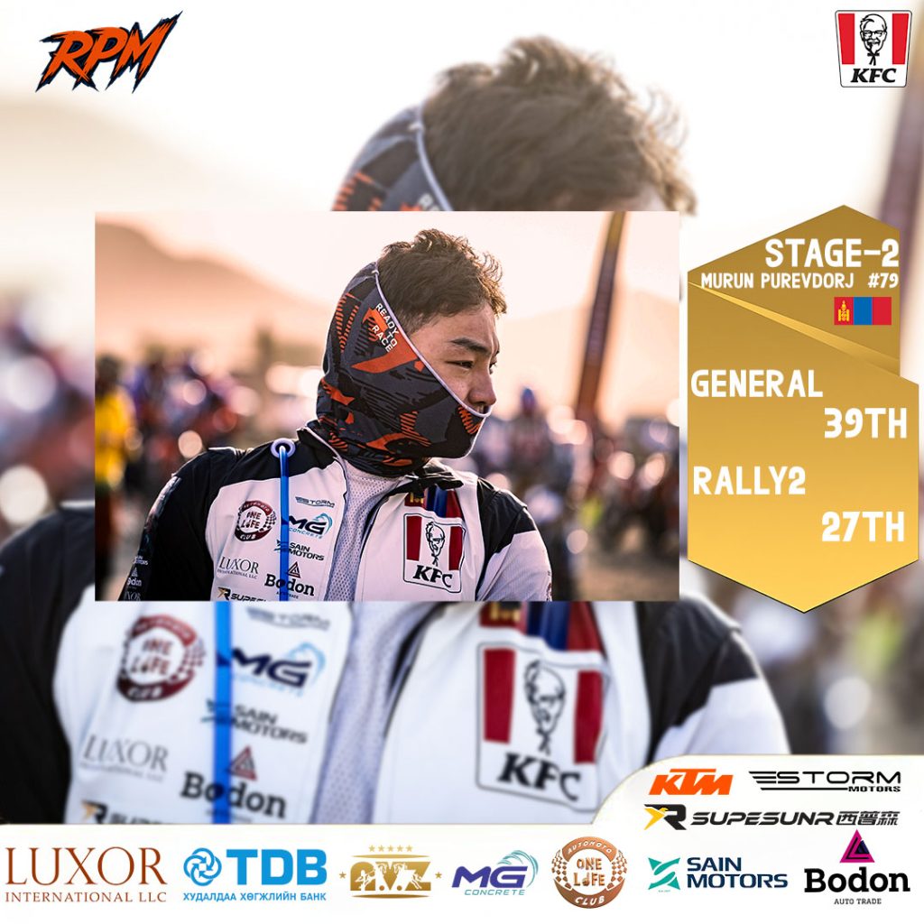 ОУХМ П.Мөрөнгийн хувьд өчигдрийн уралдааны дараа нийлбэр дүнгээр 39-р байрт, харин Ралли-2 ангилалдаа 27-р байрт бичигдэж байна.