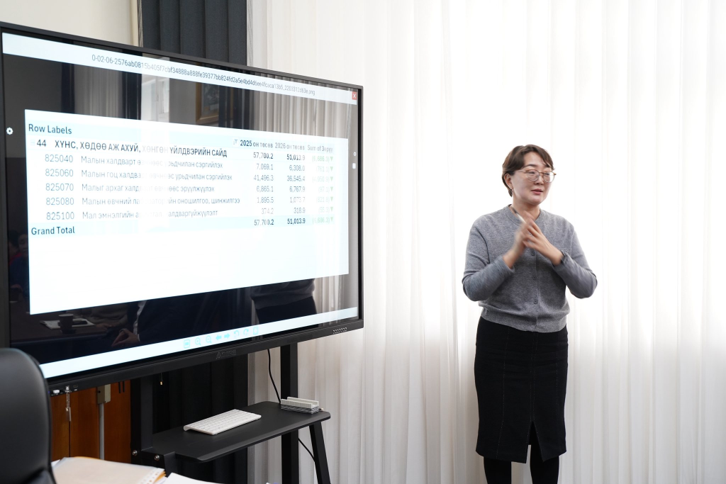 1.2025 оны үлдэгдэл санхүүжилт 18 тэрбум төгрөгийг 2026 оноос шийдвэрлэсэн ч тэр хэмжээгээр 2026 оны улсын болон орон нутгийн мал эмнэлгийн үйлчилгээний санхүүжилтэд дахин хүндрэл хавраас үүсэх тул ТӨСВИЙН ТОДОТГОЛ ХИЙХ, 2026 оны санхүүжилтийг бүрэн шийдвэрлэх,