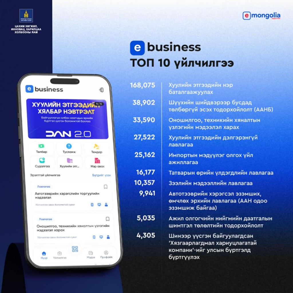 Энэ хүрээнд, төрийн үйлчилгээний нэгдсэн E-Business платформ мобайл аппликейшн 2026.01.30-ний өдрөөс хэрэглээнд нэвтэрчээ.