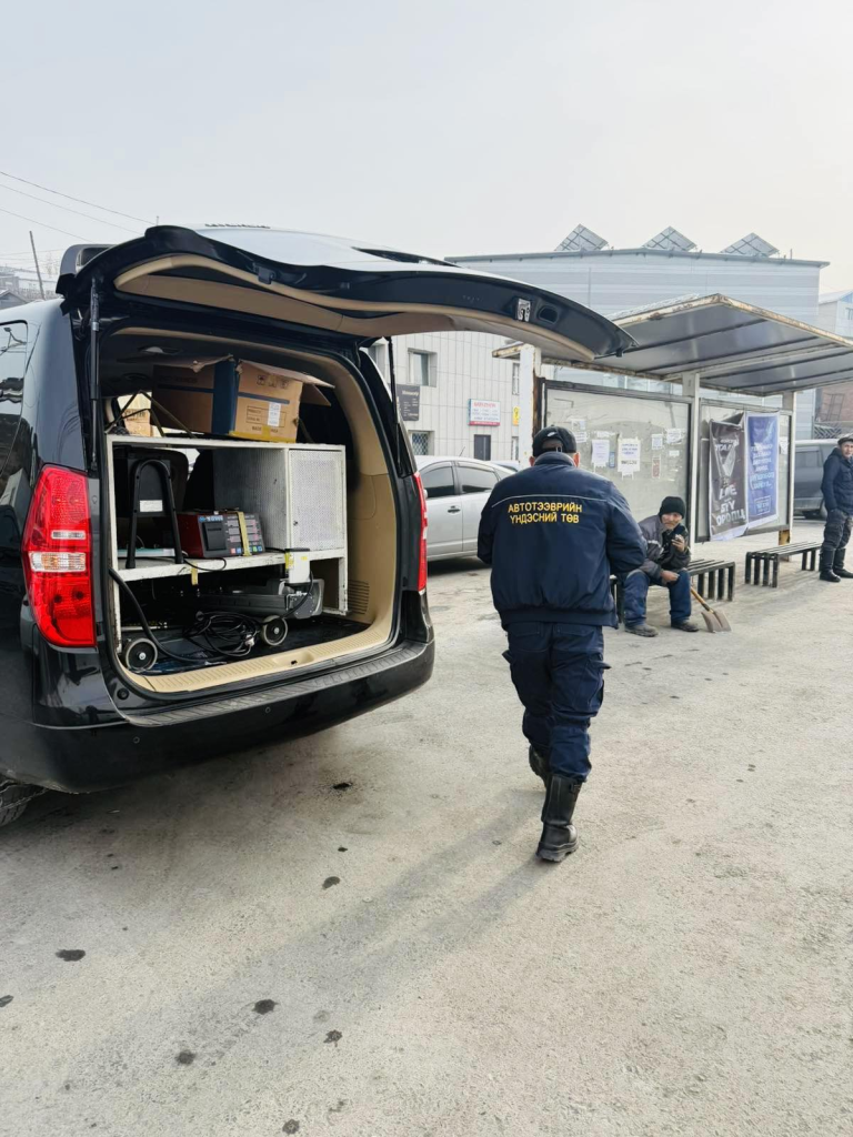 Нийслэлийн агаарын чанарыг сайжруулах бүсэд Байгаль орчны улсын хяналтын газар, Агаар, орчны бохирдолтой тэмцэх газар, Цаг уур, орчны шинжилгээний газар, Цагдаагийн ерөнхий газрын Тээврийн цагдаагийн алба, Авто тээврийн үндэсний төв хамтран салбарын улсын ерөнхий байцаагчийн баталсан 01/06 дугаар Агаарын чанарыг сайжруулах бүсэд урьдчилан сэргийлэх хяналт шалгалт хийх тухай удирдамжийн хүрээнд Улаанбаатар хотын авто замын хөдөлгөөнд оролцож буй тээврийн хэрэгслийн яндангаас гарах хаягдал утаанд хэмжилт хийжээ.