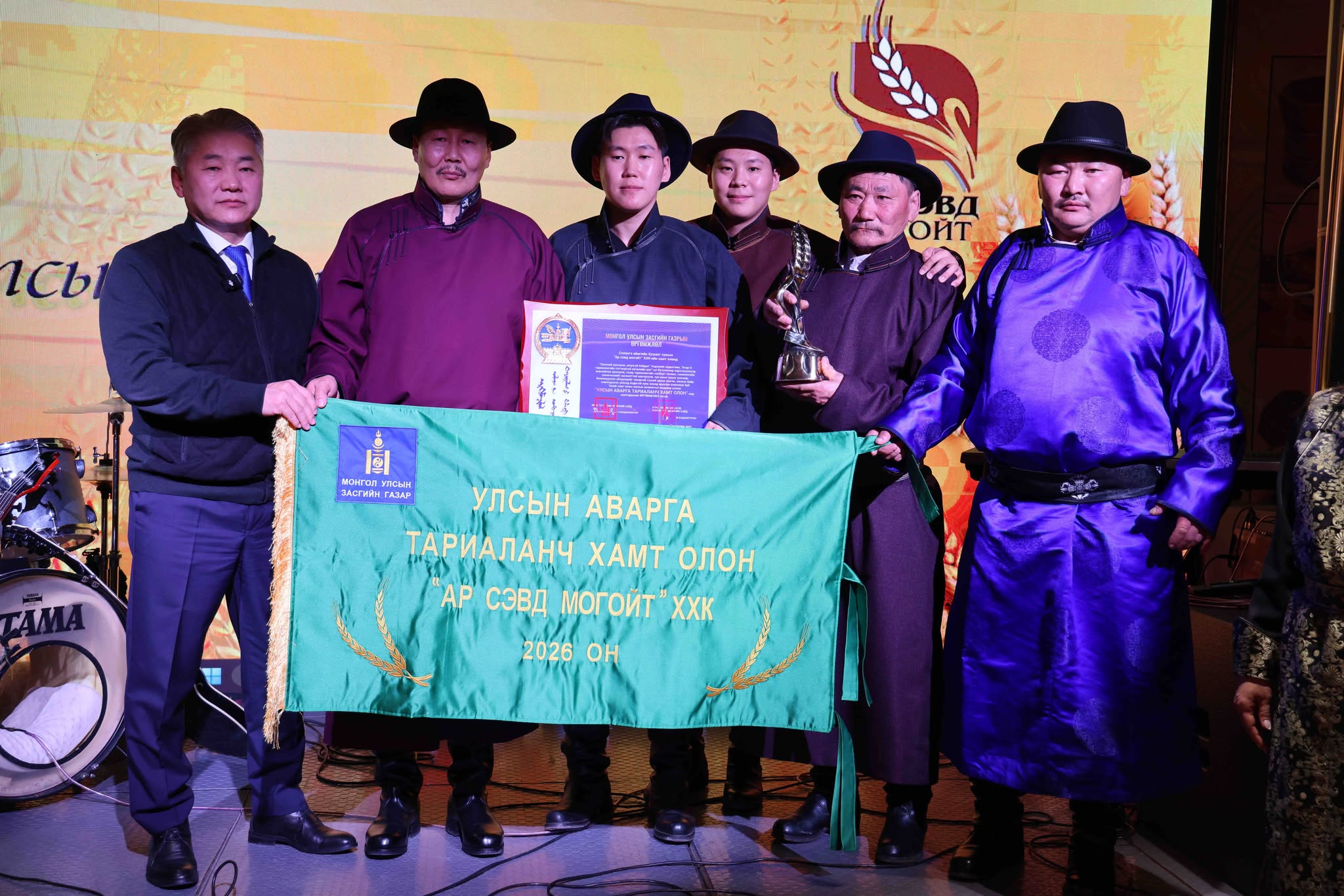 “Сүрээр дарагч” хэмээх Гал морин жилийн босгон дээр газар тариалангийн салбарт олон жил үр бүтээлтэй ажиллаж, “Хүнсний хангамж, аюулгүй байдал” үндэсний хөдөлгөөн, “Атрын IV аян”-ыг хэрэгжүүлэхэд манлайлан оролцож, газар тариалангийн салбарт техник, технологийн шинэчлэлийг амжилттай нэвтрүүлж, хүн амыг эрүүл хүнсээр, боловсруулах үйлдвэрийг чанартай түүхий эдээр хангах, ажлын байр нэмэгдүүлэх үйлсэд бодитой хувь нэмэр оруулсан “Ар Сэвд могойт” ХХК “Улсын аварга тариаланч хамт олон”-оор шалгарлаа.