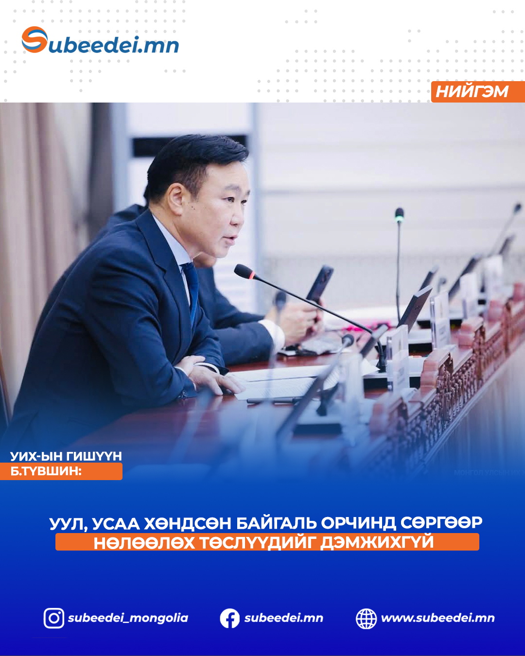 Цаашлаад уул, усаа хөндсөн байгаль орчинд сөргөөр нөлөөлөх төслүүдийг дэмжихгүй.