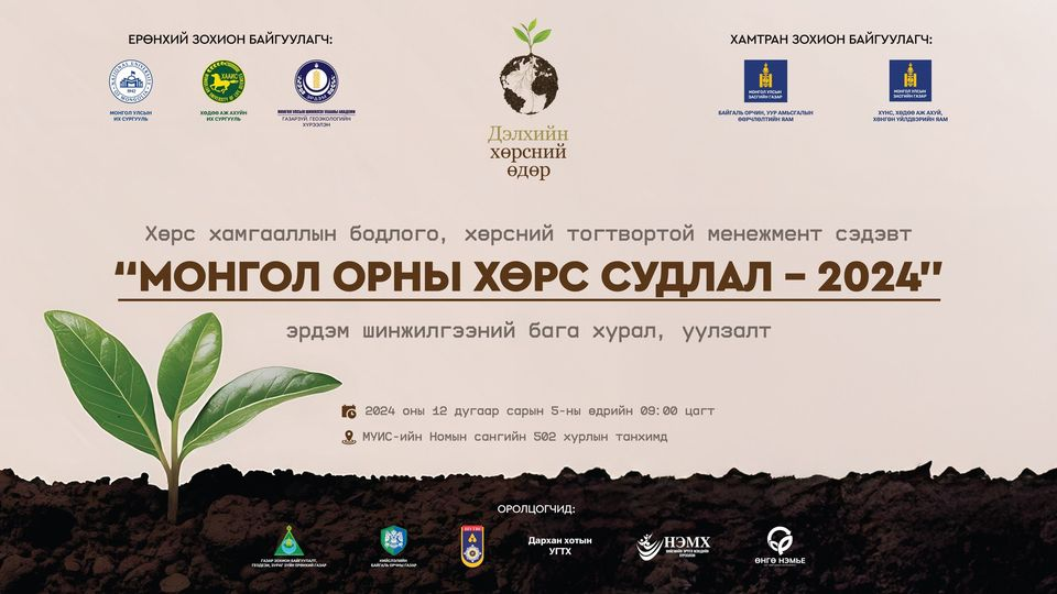 Монгол Улсын хувьд хүн амын хүнсний аюулгүй байдлыг хангахад чиглэсэн хөрсний тогтвортой менежментийг хэрэгжүүлэх бодлогын шийдвэрт хөрсний үнэн зөв өгөгдөл, мэдээллийн ач холбогдлыг чухалчилж, талуудын оролцоотойгоор “МОНГОЛ ОРНЫ ХӨРС СУДЛАЛ” эрдэм шинжилгээний хурлыг зохион байгуулна.