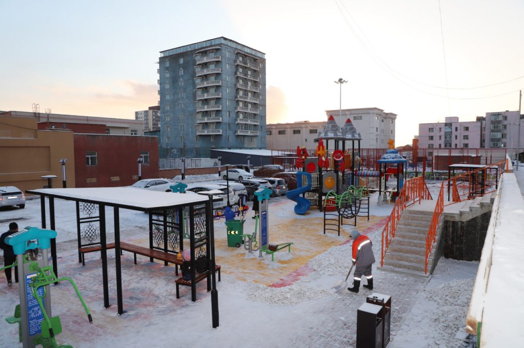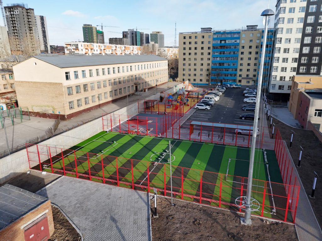 Бүтээн байгуулалтын талбайд авто машины зогсоол, пандус, явган зам, дугуйн зам, спорт талбай, тоглоомын талбай, тайз, гэрэлтүүлэг, чийрэгжүүлэлтийн төхөөрөмж, ногоон байгууламж, сандал сүүдрэвч, хогийн сав байршуулж тохижилтын ажлыг тус тус гүйцэтгэжээ.