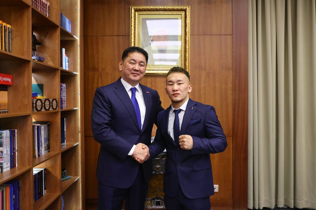 Монгол Улсын Ерөнхийлөгч Ухнаагийн Хүрэлсүх гавьяат тамирчин Э.Цэндбаатар болон мэргэжлийн боксын шилдэг тамирчдыг хүлээн авч уулзлаа.