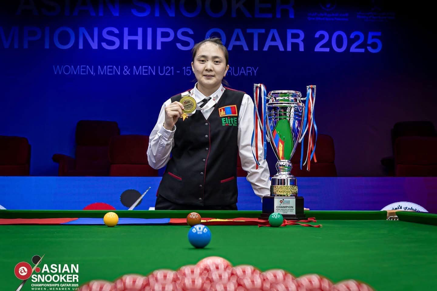 Катарын нийслэл Доха хотод снукер бильярдын Ази тивийн аварга шалгаруулах тэмцээн хоёрдугаар сарын 15-22-нд болж байгаа бөгөөд манай улсаас ОУХМ Б.Нарантуяа өрсөлдлөө. 15 улааны төрөлд өрсөлдсөн тэрбээр Хонгконгийн нэрт тамирчныг буулган авсанаар Ази тивийн аварга болж, снукер бильярдын анхны тивийн аварга Монгол тамирчин болов. Б.Нарантуяа өмнө нь снукер бильярдын ДАШТ болон Ази тивийн аварга шалгаруулах тэмцээнээс хүрэл медаль хүртэж байв.