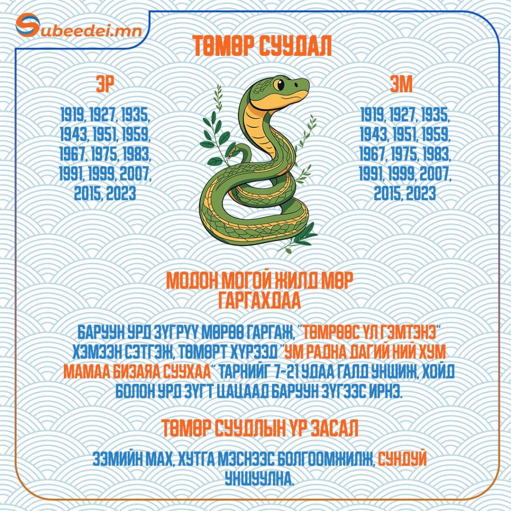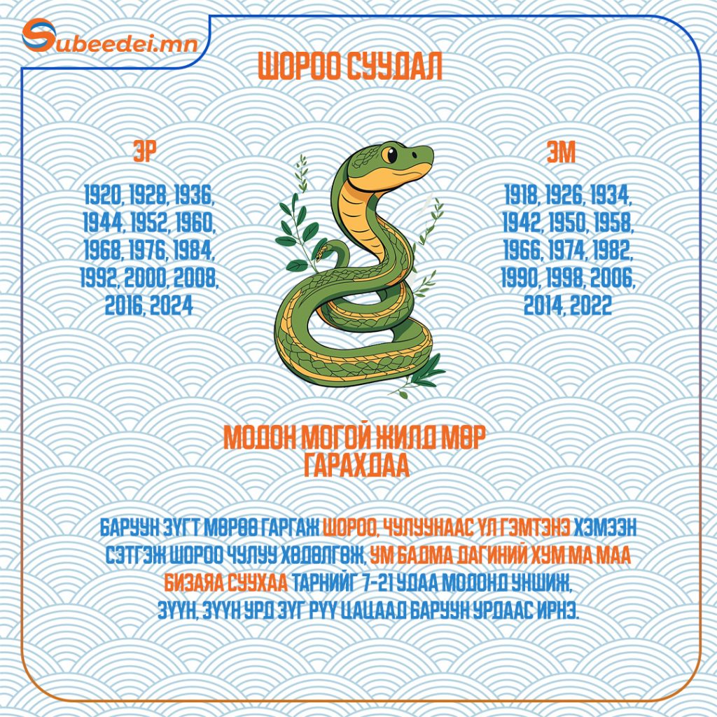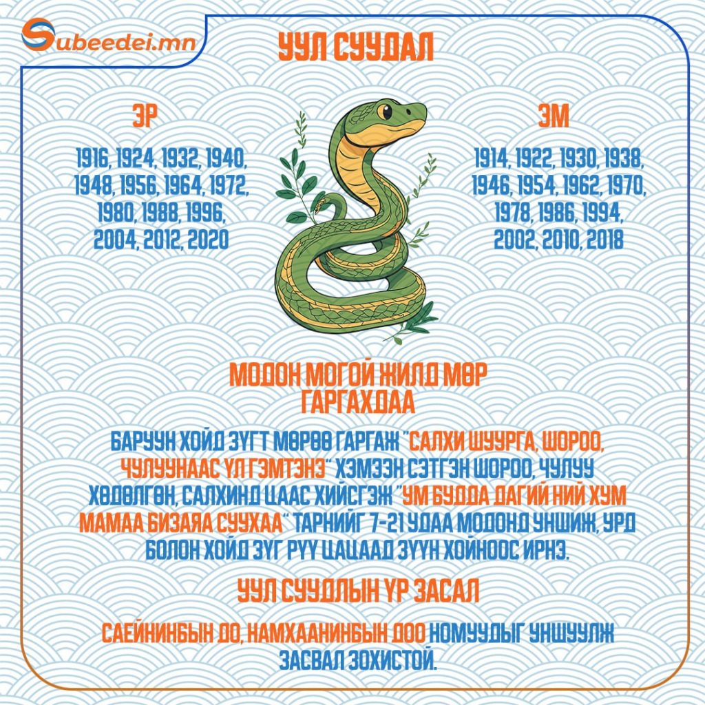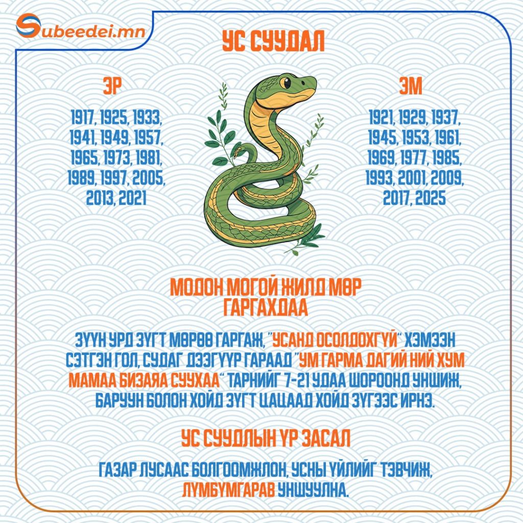Хаврын тэргүүн сарын шинийн нэгний өглөө зүг, мөрөө хэрхэн гаргаснаар тухайн жилийн өнгийг тодорхойлдог билээ. Тэгвэл XVII жарны “Элдэв эрдэнэт” хэмээх модон могой жилийн сарын шинийн өглөө зүгээ хэрхэн гаргах мөн тухайн жилд ямар засал хийлгэх тухай мэдээллийг хүргэж байна.