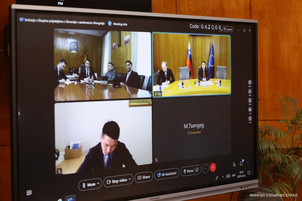 Улсын Их Хурлын гишүүн, Монгол-Словенийн парламентын бүлгийн дарга Б.Түвшин Бүгд Найрамдах Словени Улсын Үндэсний Ассамблейн гишүүн, Словени-Монголын парламентын бүлгийн дарга, хатагтай Сузана Леп Шименкотой цахим уулзалт хийлээ.