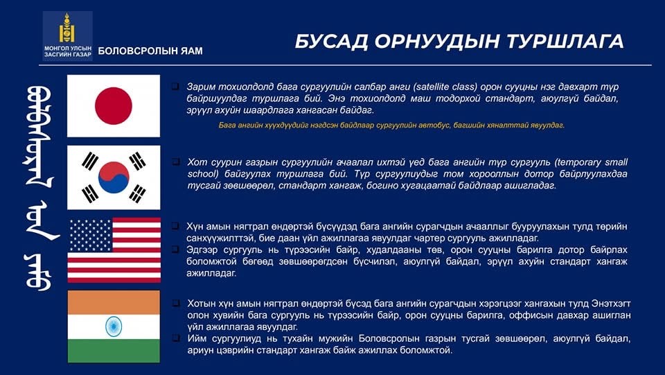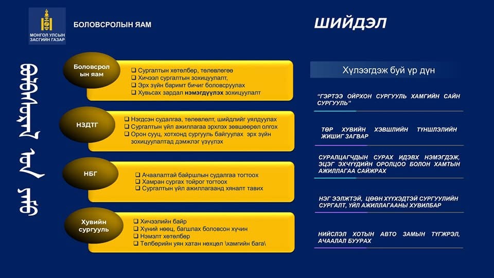 Засгийн газар 2026 оныг “Боловсролыг дэмжих жил”-ээр зарласан. Боловсролын үйлчилгээг чанартай, хүртээмжтэй болгох, ачааллыг бууруулах зэрэг арга хэмжээ нь нэрэмжит жилийн ажлын чухал хэсэг байх болно. Тиймээс ч Боловсролын жилийн зарим зорилтыг Улаанбаатар хотын замын түгжрэлийг бууруулах зорилготой уялдуулж буйгаа илэрхийллээ гэж БЯ-наас мэдээлэв.
