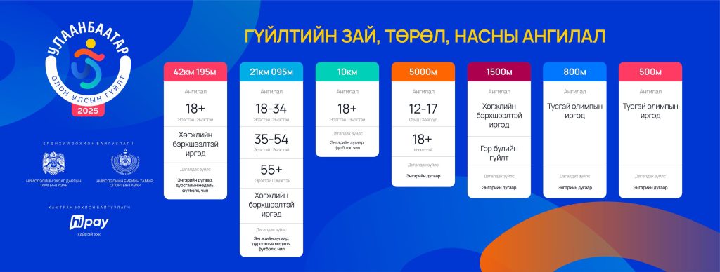 “Улаанбаатар марафон 2025” олон улсын гүйлтийн зай төрлүүдтэй танилцаж, өөрийн гүйх төрлийг сонгон марафондоо идэвхтэй оролцохыг уриалж байна.