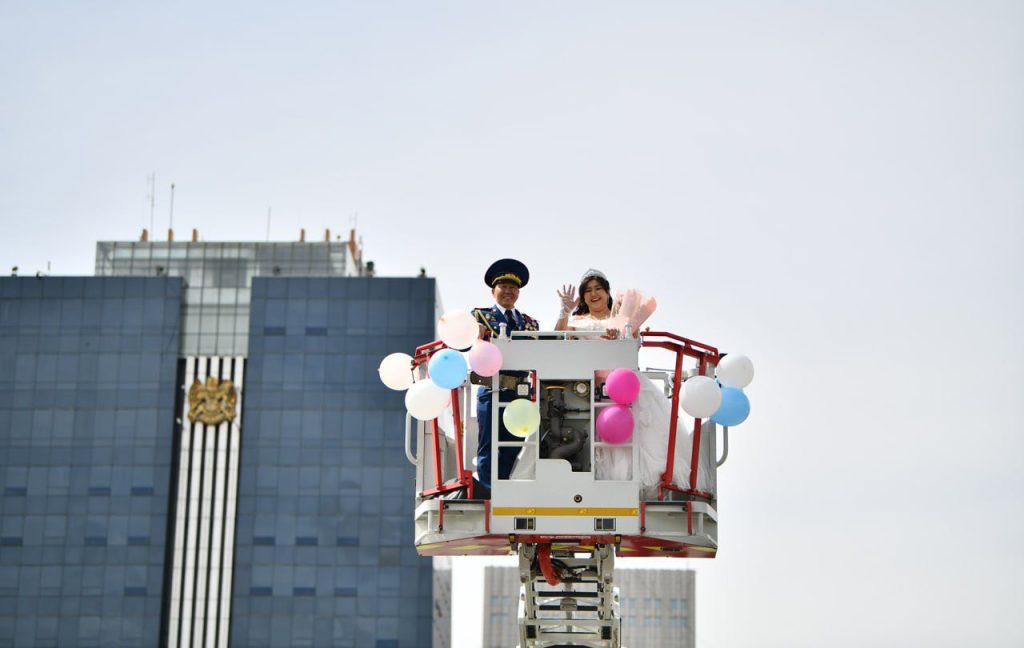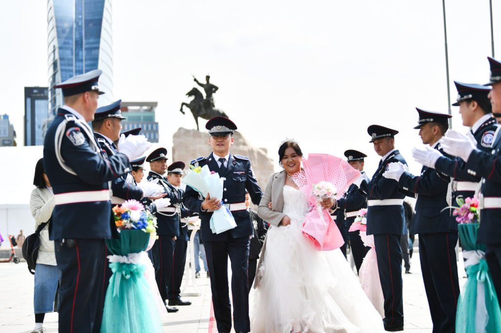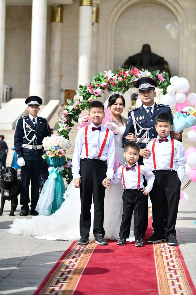 Нийслэлийн нутгийн захиргааны байгууллага НОБГ, ОСНААУГ, УСУГ, НЦУГ, НБГ, Зорчигч тээвэр 4, Баянгол эрүүл мэндийн төвөөс ажил амьдралын зам мөрөө холбосон долоон хос “Гэрлэх ёслолын ордон”-д өнөөдөр хуримлалаа.