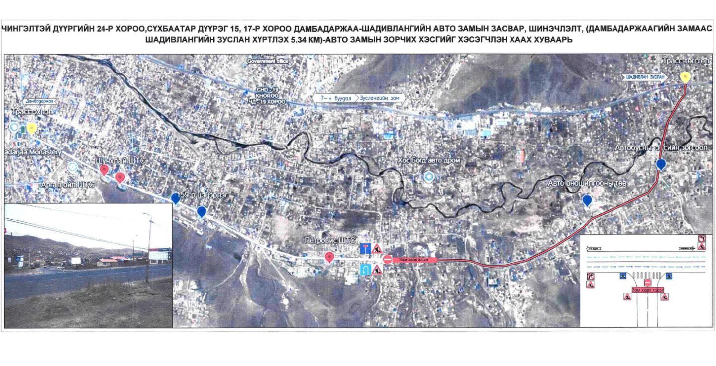 ЧД-ийн 24-р хороо, СБД-ийн 15, 17-р хорооны нутаг дэвсгэр, Шадивлан зуслангийн авто замаас Дамбадаржаа хүртэлх авто замыг шинэчилж байна. Энэ хүрээнд Шадивлан зуслангийн авто замаас Петровис ШТС хүртэлх 2.7 км урт авто замыг 5-р сарын 7-ны өдрийн 01:00 цагт хааж, асфальт бетоноор хучна. Тус авто замыг 5-р сарын 15-ны 06:00 цагт нээнэ.