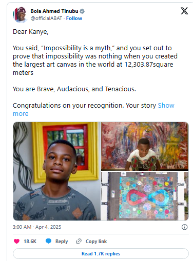 12,304 хавтгай дөрвөлжин метр талбайд зурсан тус зураг жирийн хөлбөмбөгийн талбайн (ойролцоогоор 7,140 м²) хэмжээнээс хавьгүй том юм. Тэрээр бүтээлээ 2024 оны 11-р сард зурж дуусгасан бөгөөд 2025 оны 4-р сард Аутизмыг Хүлээн Зөвшөөрөх Дэлхийн Өдрөөр Нигерийн нийслэл Абужа хотод албан ёсоор олон нийтэд толилуулж, Гиннесийн дэлхийн дээд амжилтаар хүлээн зөвшөөрсөн байна.