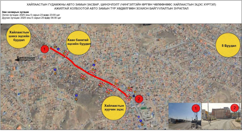 Нийслэлийн Чингэлтэй дүүргийн Чингэлтэйн өргөн чөлөөнөөс Хайлаастын эцэс хүртэл 4 км авто замыг гурван хэсэгт хэсэгчлэн хааж засна.
