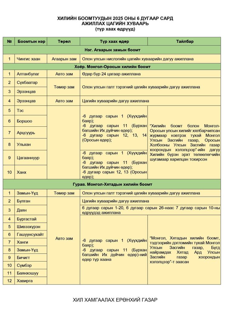 Нийгэм 6-р сарын 01 болон 11-нд зарим хилийн боомтууд түр хаана 5 сар 26, 20255 сар 26, 2025 2025 оны 6 дугаар сард хилийн боомтуудын ажиллах цагийн хуваарийг танилцуулъя. Энэ мэдээг хуваалцах :