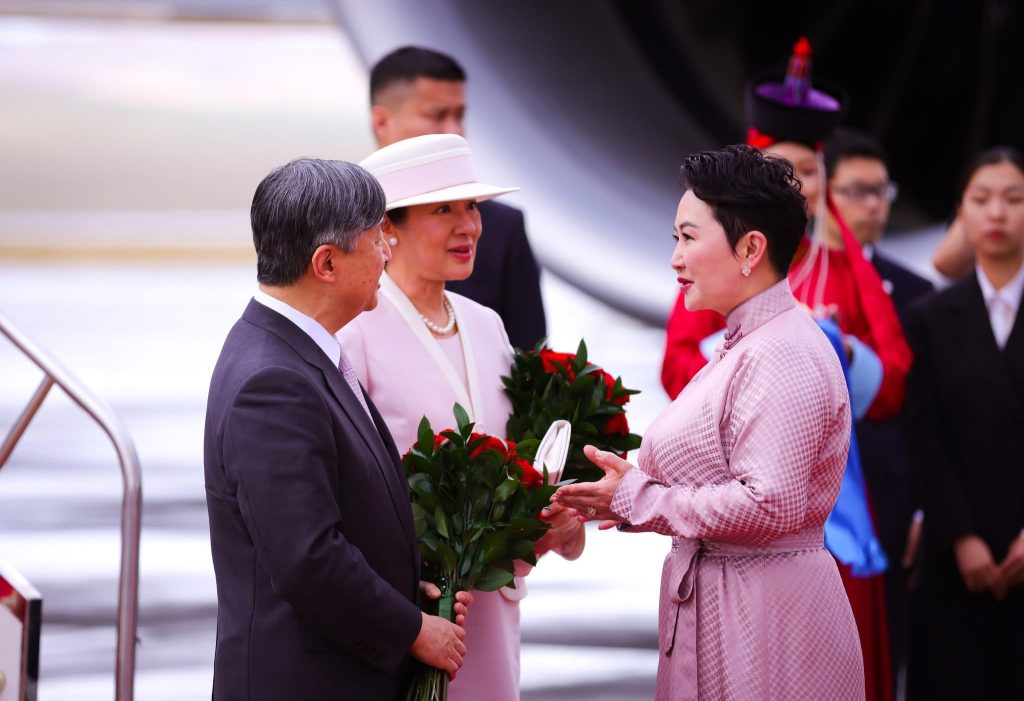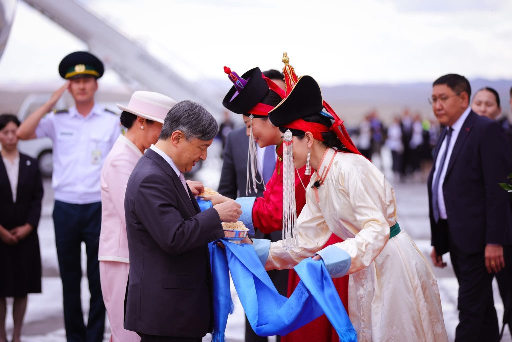 Цог Жавхлант Эзэн Хаан Нарүхито, Эрхэм дээд Хатан Масако нарыг “Чингис хаан” олон улсын нисэх буудалд Гадаад харилцааны сайд Б.Батцэцэг, Монгол Улсаас Япон Улсад суугаа Онц бөгөөд Бүрэн эрхт Элчин сайд Б.Баярсайхан, Япон Улсаас Монгол Улсад суугаа Онц бөгөөд Бүрэн эрхт Элчин сайд М.Игавахара нарын төлөөлөгчид угтав.