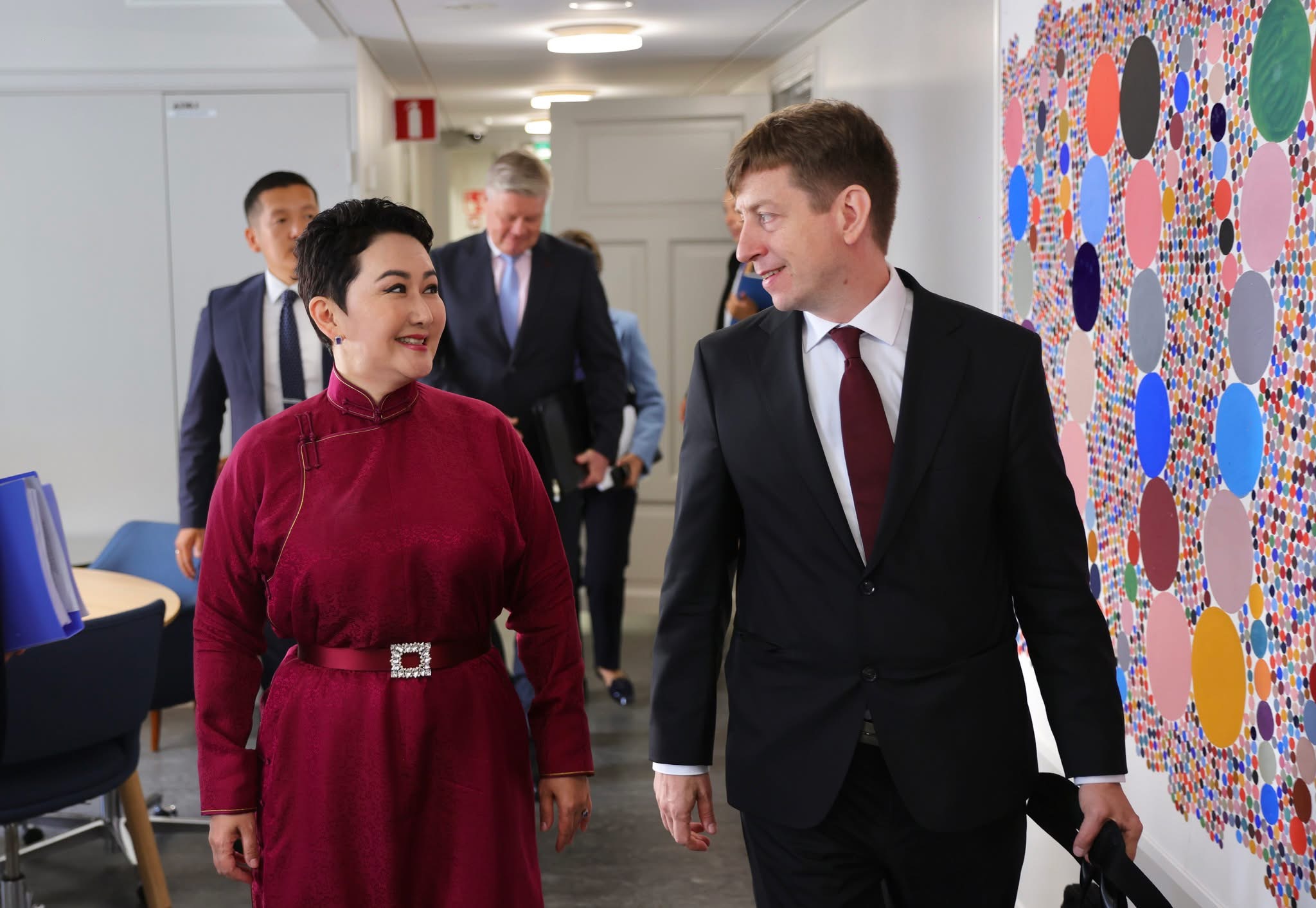 Гадаад харилцааны сайд Б.Батцэцэг Бүгд Найрамдах Финланд Улсад хийж буй албан ёсны айлчлалынхаа хүрээнд тус улсын Эдийн засгийн сайд Сакари Пуистотой 2025 оны 08 дугаар сарын 01-ний өдөр уулзлаа.