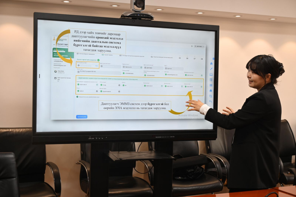 Энэ зорилтын хүрээнд нийгмийн даатгалын сангаас олгох хөдөлмөрийн чадвар алдсаны тэтгэвэр тогтоолгох хүсэлтийг https://portal.ndaatgal.mn/-ээр цахимаар илгээх системийн хөгжүүлэлтийг Нийгмийн даатгалын ерөнхий газрын дэргэдэх Мэдээллийн технологийн төвийн мэргэжилтнүүд ажлын хэсэгт танилцуулав.